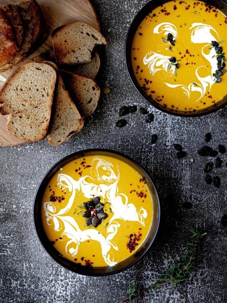 Polévka z pečené dýně s bramborami a rozmarýnem